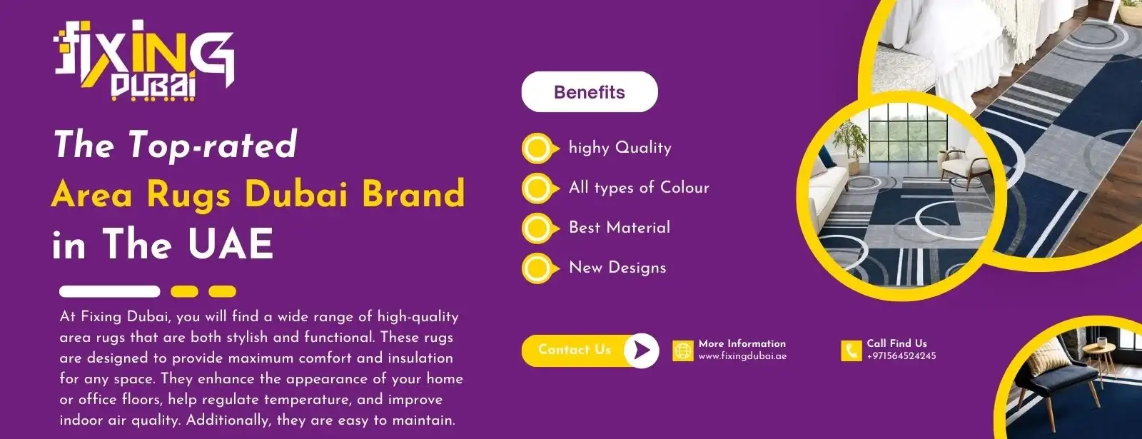Fixing Dubai prides itself on providing the most premium range of area rugs at budget-friendly prices in Dubai. We offer our customers floor coverings that can upgrade their interior decor without making major changes to their place. Our team provides free consultations about the selection of the right rugs and their designs that suit your needs the best.