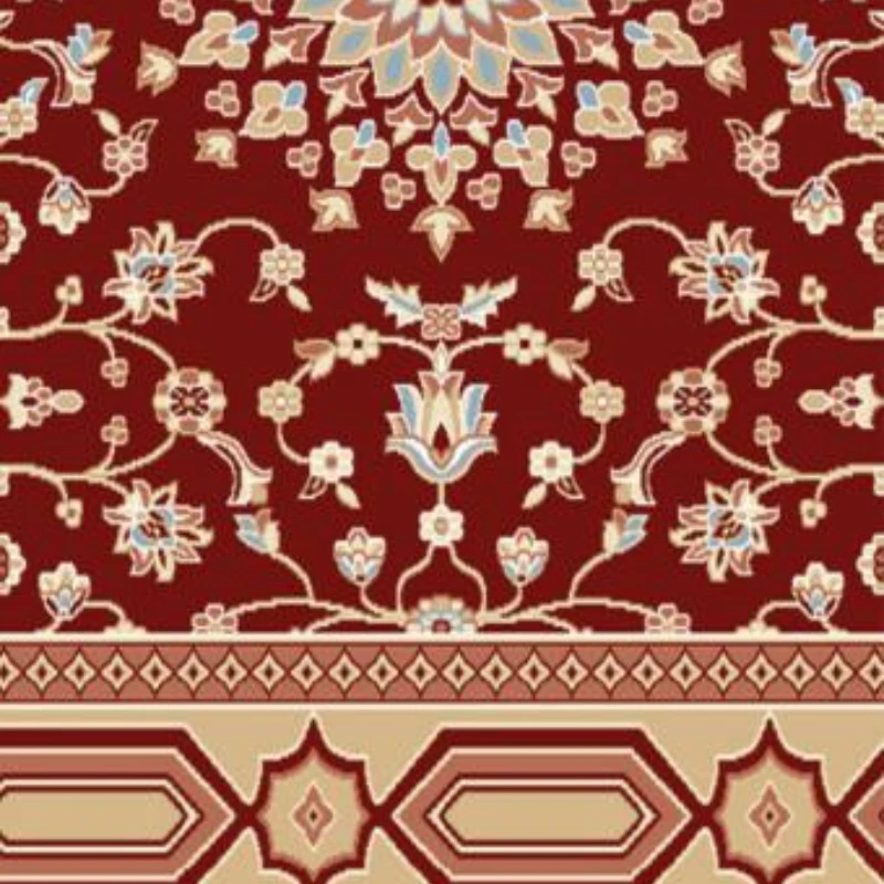 This prayer carpet is made up of a polypropylene and nylon combination. The material is strong and durable for daily use. It can handle heavy foot traffic in busy mosques.