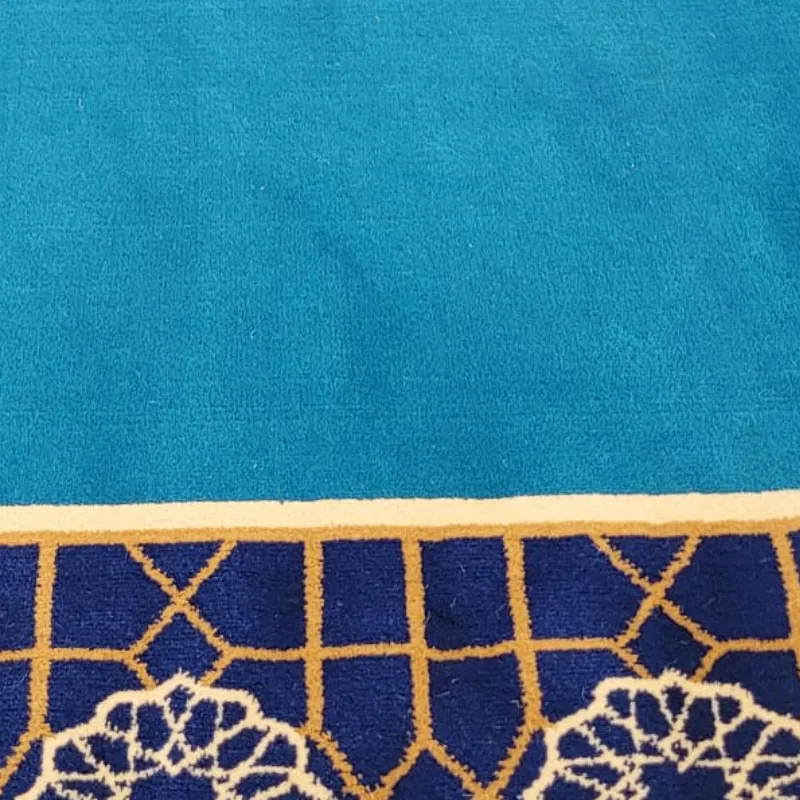 The Turquise Blue Border Masjid Carpet brings comfort and a neat prayer layout. It features a turquoise blue border design that helps organize prayer rows. while adding a calm and elegant look to the mosque interior.